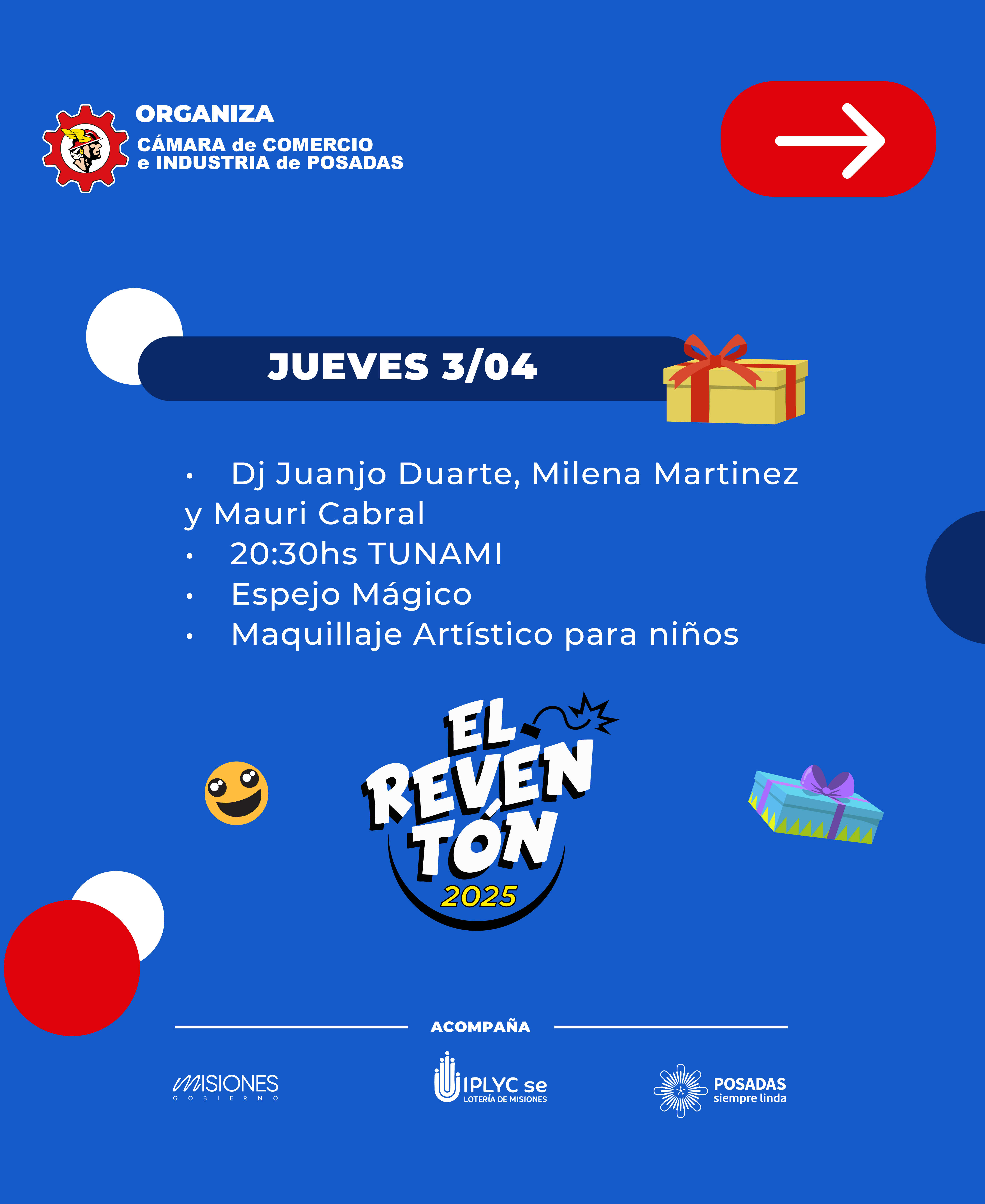 Te esperamos este jueves 3 de abril para vivir una jornada llena de ritmo, alegría y actividades para grandes y chicos. Música en vivo: DJ Juanjo Duarte, Milena Martínez y Mauri Cabral 20:30 hs – TUNAMI ✨ Además: Espejo mágico Maquillaje artístico para niños ¡Sorpresas durante todo el evento! Organiza: Cámara de Comercio e Industria […]